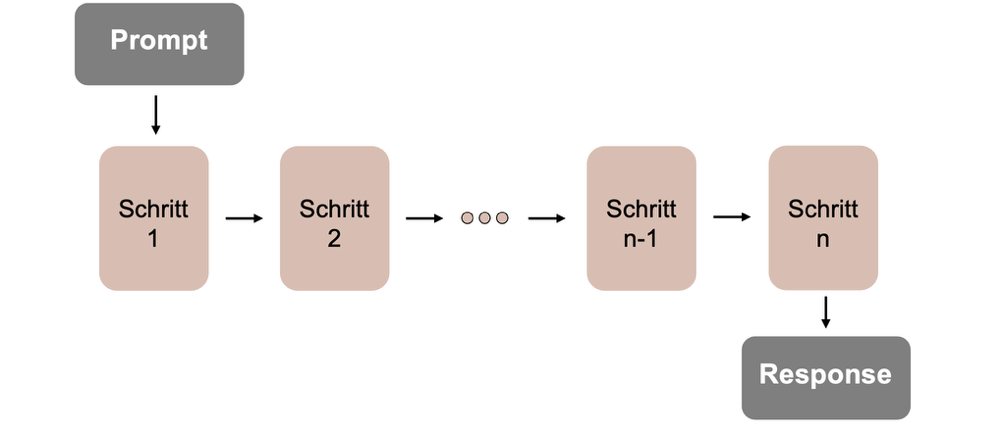 Ein prominentes Beispiel ist das Chain-of-Thought-Reasoning (CoT), das erstmals 2022 von Wei et al. beschrieben wurde [21]. CoT modelliert mehrschrittiges logisches Denken, indem ein Problem nicht unmittelbar beantwortet wird, sondern über eine explizite Sequenz intermediärer Schlussfolgerungsschritte. Diese explizite Darstellung von Zwischenschritten erlaubt es dem Modell, komplexe logische Abhängigkeiten innerhalb einer autoregressiven Generierung zu repräsentieren und führt empirisch zu einer verbesserten Lösungsqualität bei anspruchsvollen Aufgaben [21].