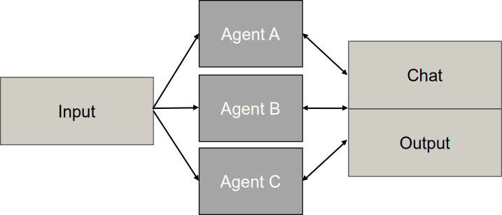 Das Parallel Pattern ([concurrent]) (auch Concurrent Orchestration oder Fan-out/Fan-in-Muster) ist eine Architektur, bei der mehrere spezialisierte Agenten Aufgaben gleichzeitig und unabhängig voneinander bearbeiten. Das Muster zielt primär darauf ab, Latenzzeiten zu reduzieren und diverse Perspektiven zu integrieren [36], [37], [44].