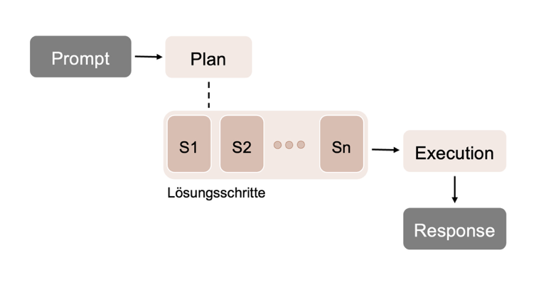 Im Unterschied zu zuvor beschriebenen Reasoning-Patterns, bei denen Planung und Ausführung eng miteinander verschränkt oder implizit innerhalb eines fortlaufenden Reasoning-Prozesses erfolgen [22], [25], führt Plan-then-Execute eine klare funktionale Trennung dieser beiden Aspekte ein [29]. Dadurch wird der Lösungsprozess stärker strukturiert und besser kontrollierbar.