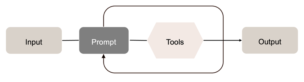 Bei der Single-Agent-Orchestrierung verarbeitet ein einzelner Agent den gesamten Aufgabenfluss. Der Agent erhält den initialen Input, führt internes Reasoning durch und ruft bei Bedarf externe Tools, etwa Suchfunktionen oder Code-Ausführungen, auf. Die Ergebnisse dieser Tool-Aufrufe werden in den internen Kontext integriert, woraufhin der Agent seine Schlussfolgerungen iterativ aktualisiert, bis ein finales Ergebnis erzeugt wird [35].
